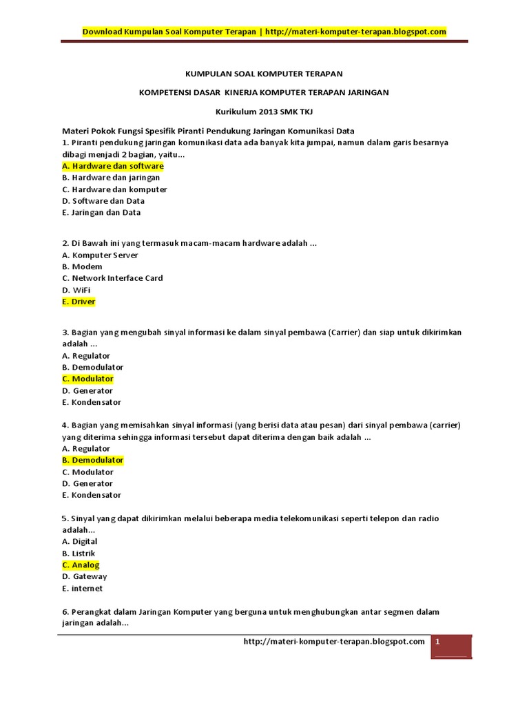 Download soal uas kelas 6 semester 2 dan kunci jawabanDownload soal. 60 contoh soal dan jawaban uas komputer terapan. Soal Komputer dan jaringan dasar kelas 10 semester 1 Latihan 1 Selamat siang Student worlds kali ini ingin berbagi soal tentang komputer dan jaringan semoga bermanfaat bagi semua 1 Aug 24 2018.