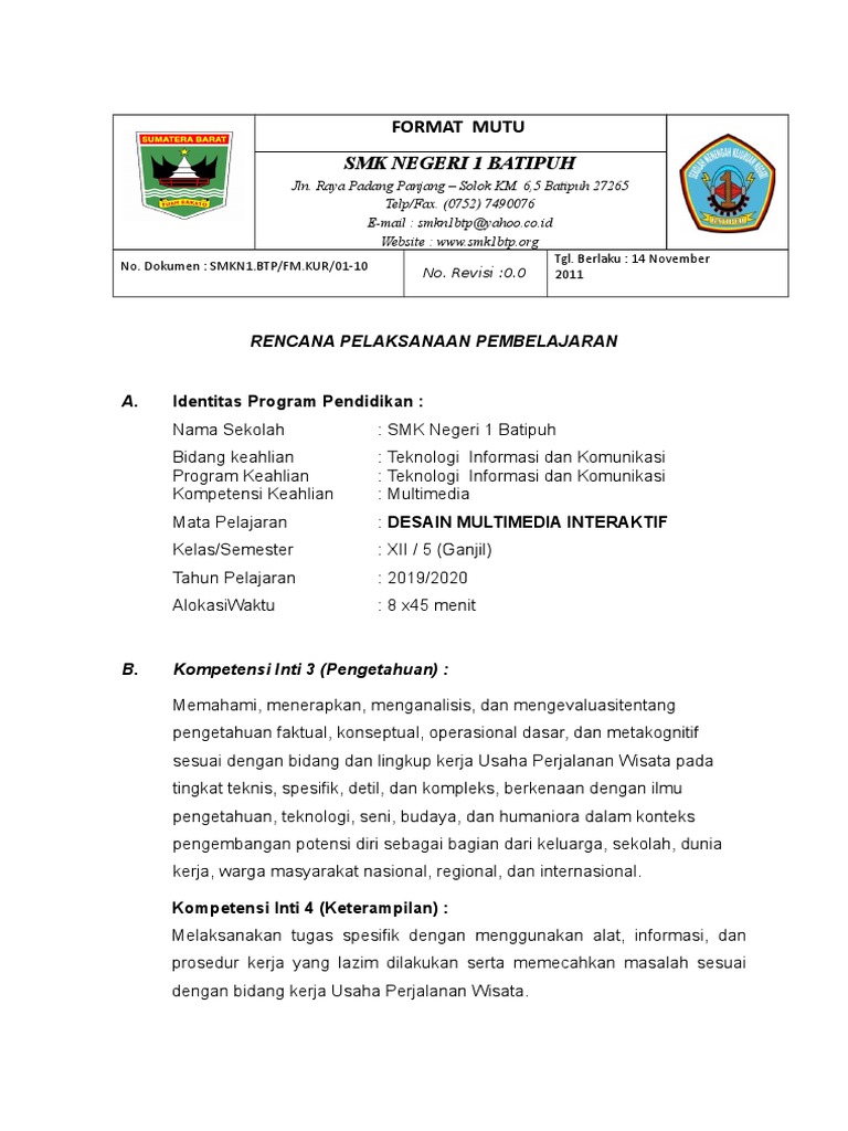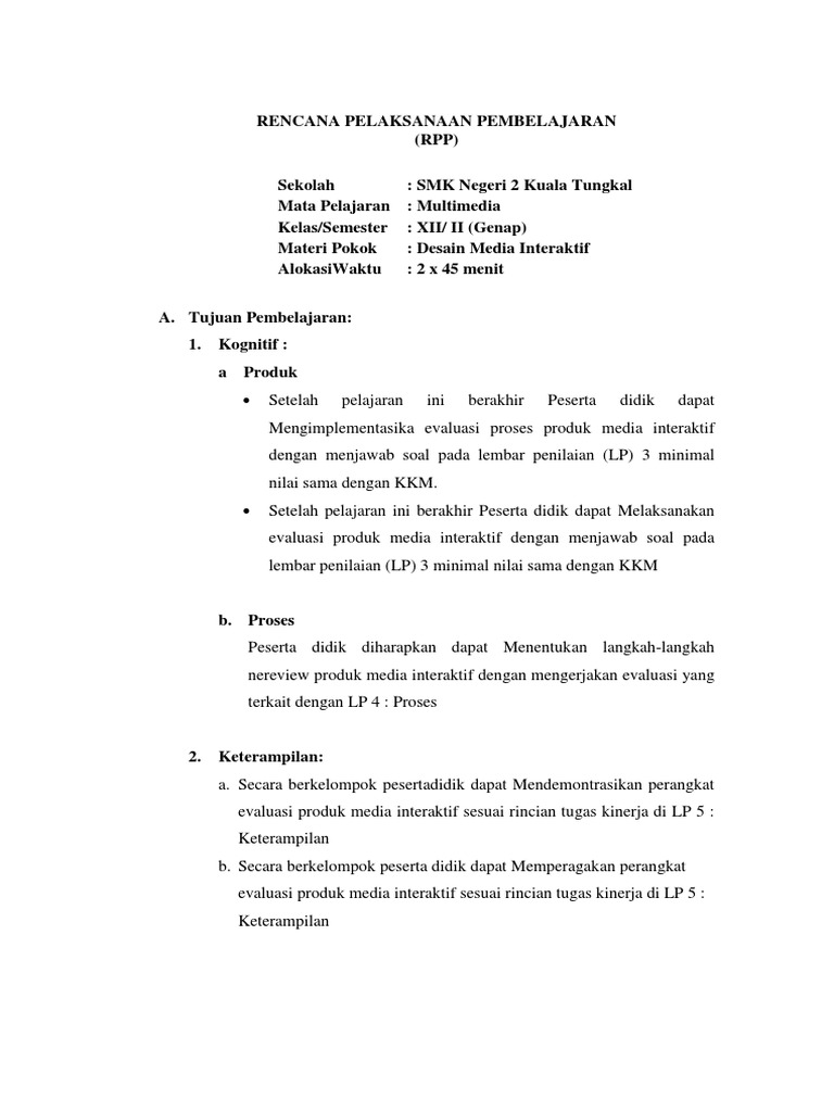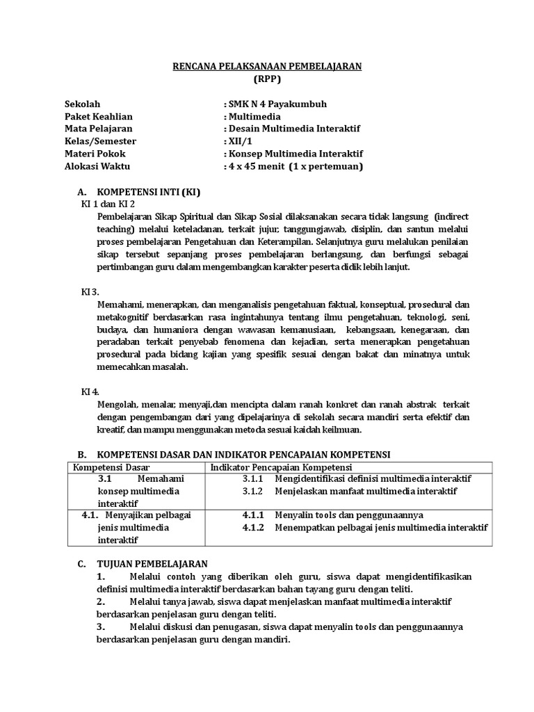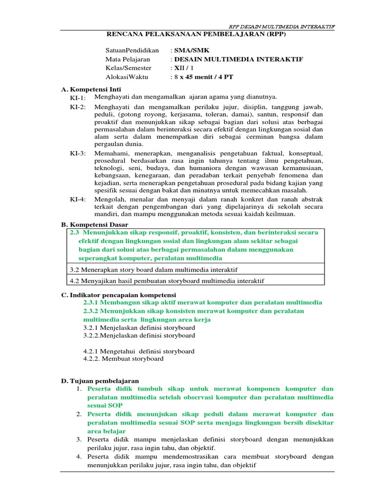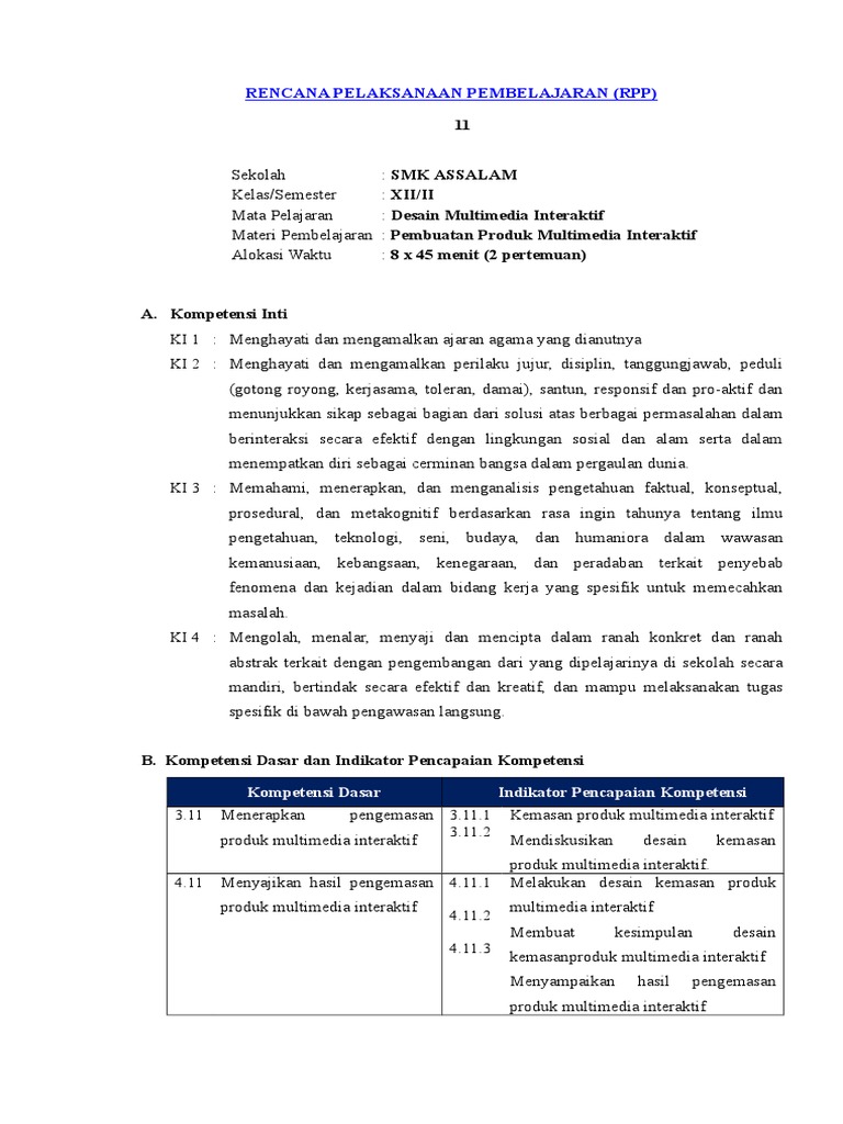 Rpp Desain Multimedia Interaktif Kd 3 11 Dan 4 11 Doc
