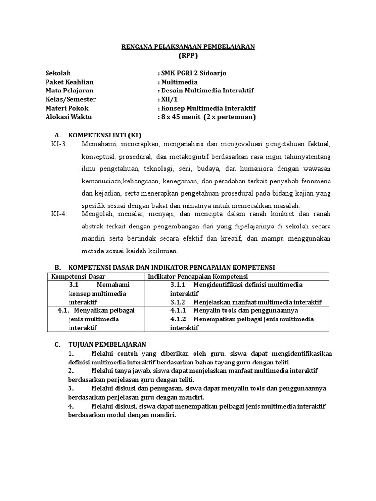 Rpp Desain Multimedia Interaktif Kd1 Ganjil Xii