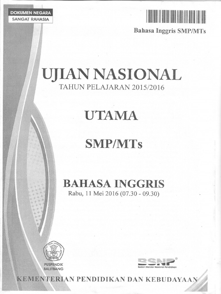 Soal Dan Jawaban Ujian Nasional Smp 2018 Bahasa Inggris Rabu 25 April 2018. Contoh soal un sd bahasa indonesia 2019 2020 dan kunci jawabannya. Berisi kumpulan soal-soal Ujian Nasional Bahasa Indonesia tingkat SMP dari tahun 2008-2017.