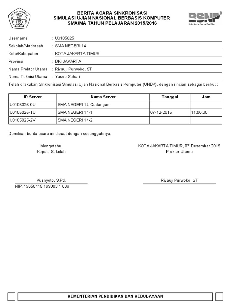 Berita Acara Ujian Nasional Berbasis Komputer Unbk 2015 2016