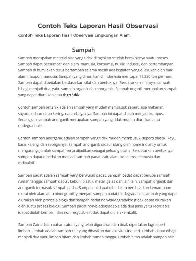 Contoh Teks Laporan Hasil Observasi Tentang Lingkungan Rumah Dapatkan Contoh
