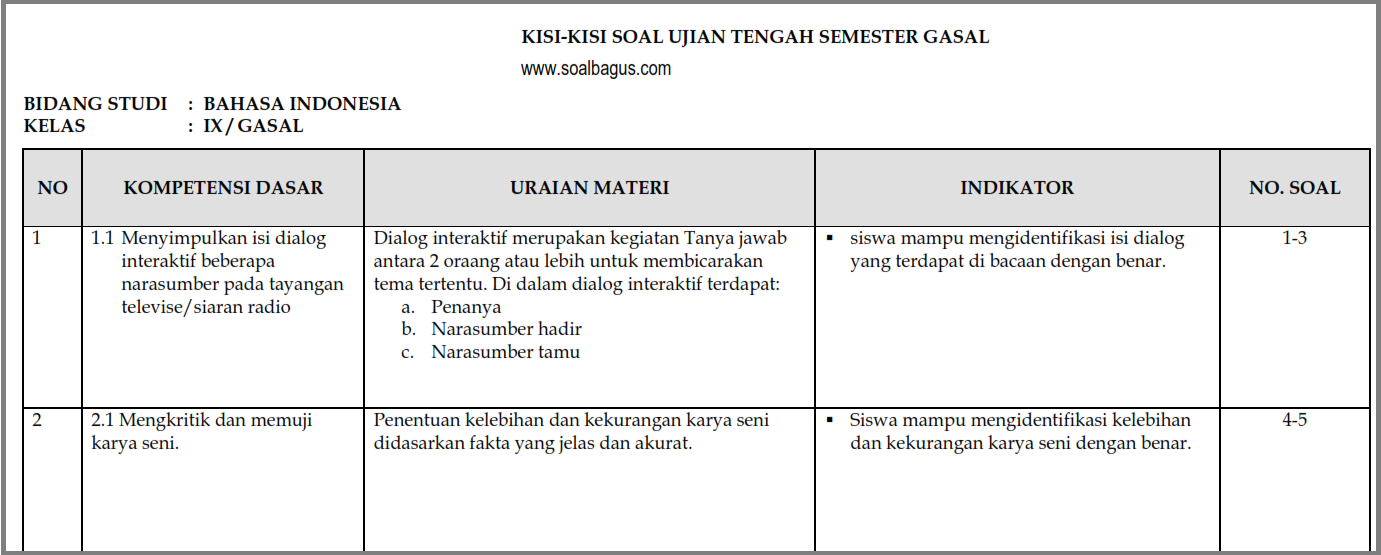 Kisi Kisi Uts B Indonesia Kelas 9 Semester 1 Ganjil Soalbagus Com