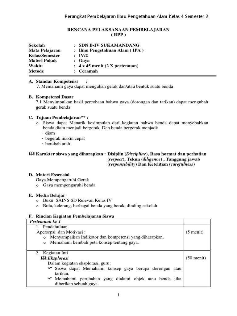 2 RPP SD KELAS 4 SEMESTER 1 Selalu Berhemat Energi tentang gaya gerak energi panas bunyi dan cahaya dalam bahasa Indonesia lisan dan tulis dengan memilih dan memilah kosakata baku. Ilmu Pengetahuan Alam IPA KELAS SEMESTER. Suhu dan Kalor.