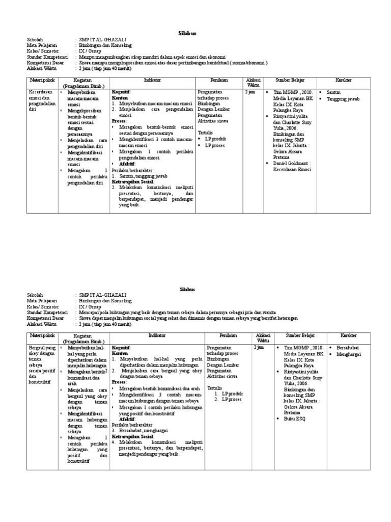 Silabus Kurikulum 2013 Smp Bimbingan Konseling