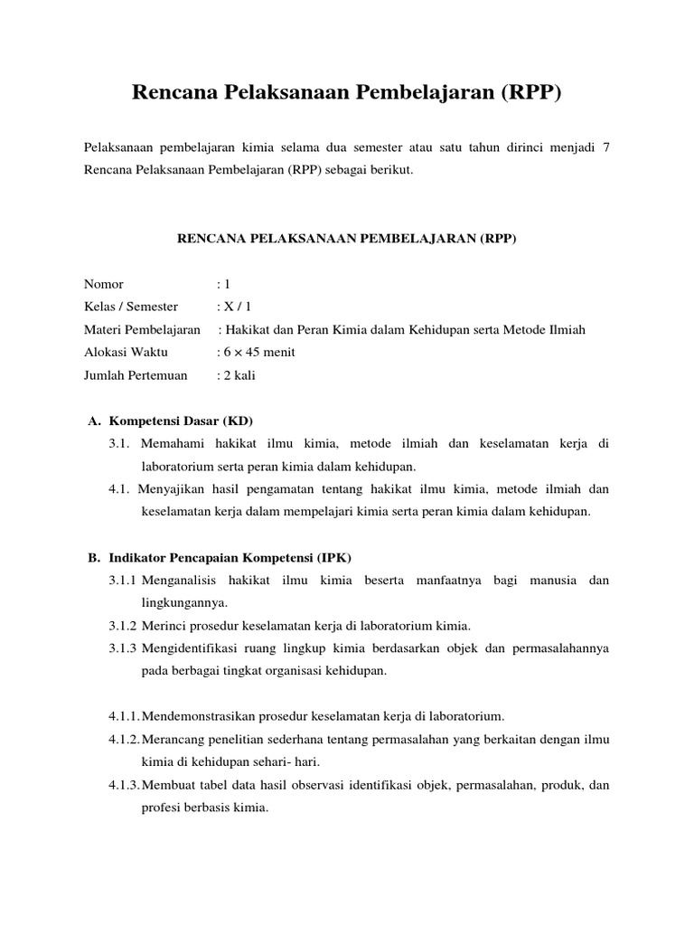 Rpp Kurikulum 2013 Kimia X Bab Pendahuluan