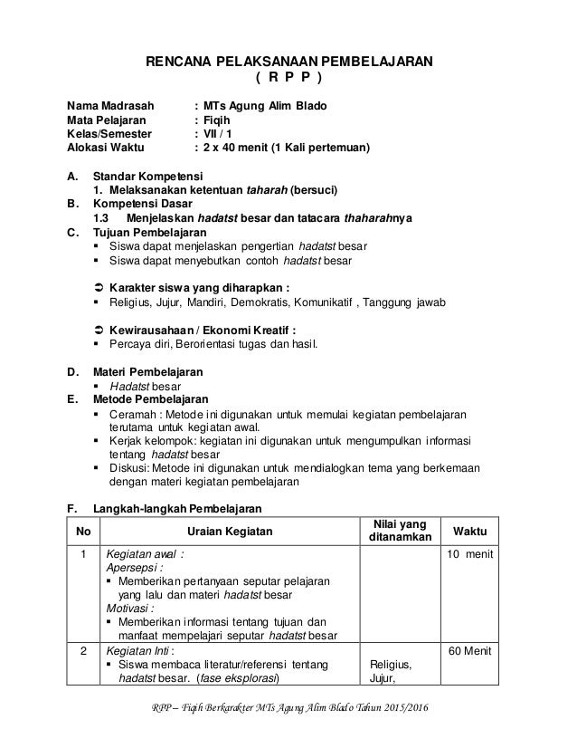 Nahwu shorof kelas semester. Berikut ini adalah contoh. Rpp ktsp mts.