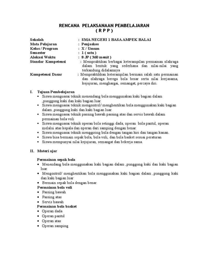 Perangkat Pembelajaran RPP 1 Lembar SMA. Download RPP Penjas SMA kelas X. WA 085 218 321 456 SMP Contoh Rpp Penjas Smp Kelas 7 Kurikulum 2013.