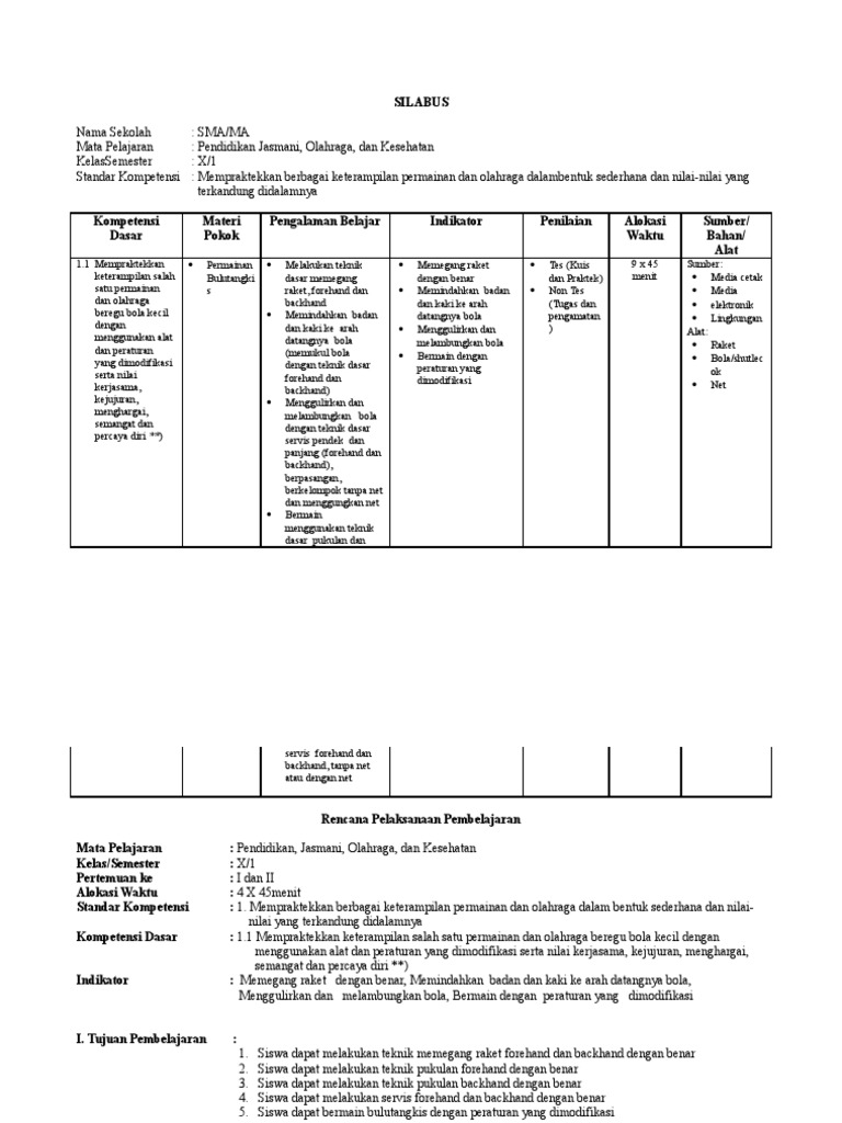 Rpp Pjok Sma Kurikulum 2013 Revisi 2017 Doc Kelas X Xi Xii Info Pendidikan Terbaru