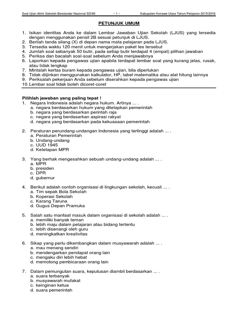 Contoh Soal Ujian Sekolah Pkn Kelas 6 Sd Tahun 2019 2020 Sanjayaops. Soal Ujian Sekolah IPS Kelas 6 by Degest.