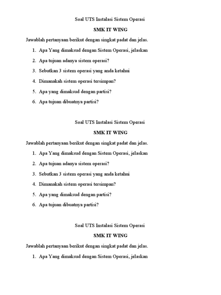 Contoh soal dan jawaban manajemen operasi. X TKJ KISI-KISI. Sistem operasi adalah jenis yang paling penting dari segala perangkat lunak dalam sistem komputer Kisi-Kisi dan Soal UTS Materi Sistem Operasi - SMK TKJ MATA PELAJARAN.