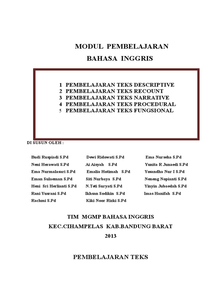 Read free for 30 days. Pets or persons we know well. Bahan ajar bahan ajar ini berisikan tentang jenis jenis teks genre yang sering dijumpai pada teks teks pelajaran bahasa inggris.