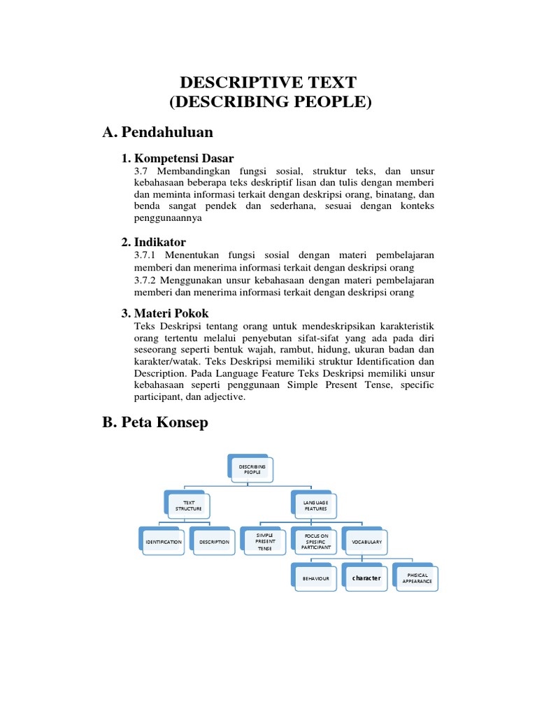 Bahan ajar descriptive text. There are two main parts of descriptive text. It is the part of the paragraph that introduces the character. Its purpose is to describe and reveal a.