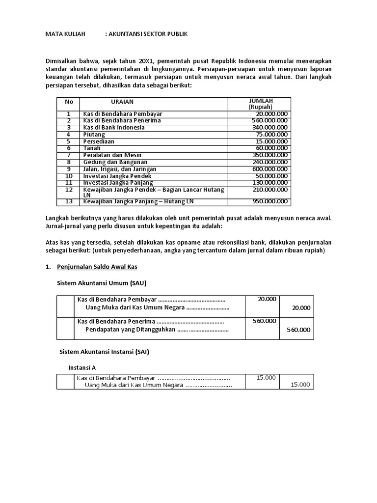 MAKALAH SEMINAR AKUNTANSI SEKTOR PUBLIK PERSEDIAAN MADE GDE SATRIA BELA A31115753 S1 STAR-BPKP BATCH 2 PROGRAM STUDI AKUNTANSI FAKULTAS EKONOMI DAN BISNIS UNIVERSITAS HASANUDDIN 2016 KATA PENGANTAR Puji syukur penulis panjatkan kepada Tuhan Yang Maha Esa atas berkat dan karunia- Nya sehingga peneliti dapat menyelesaikan modul akuntansi. Download Contoh Soal Dan Jawaban Penjurnalan Akuntansi Sektor Publik PDF 1400 MB - SamPDF. Contoh Jurnal Umum Akuntansi Sektor Publik Pilkada Id Soal Usulan Uas Akuntansi Sektor Publik Pdf Document Jurnal Akuntansi Pemerintahan Ppt Download Siklus Akuntansi Sektor Publik Phone Pdf Jurnal Akuntansi Dan Bisnis Akuntansi Sektor Publik Cara Membuat Neraca Saldo Dari Buku Besar Dan Jurnal Umum 30 Soal Pilihan Ganda Akuntansi Pemerintahan.