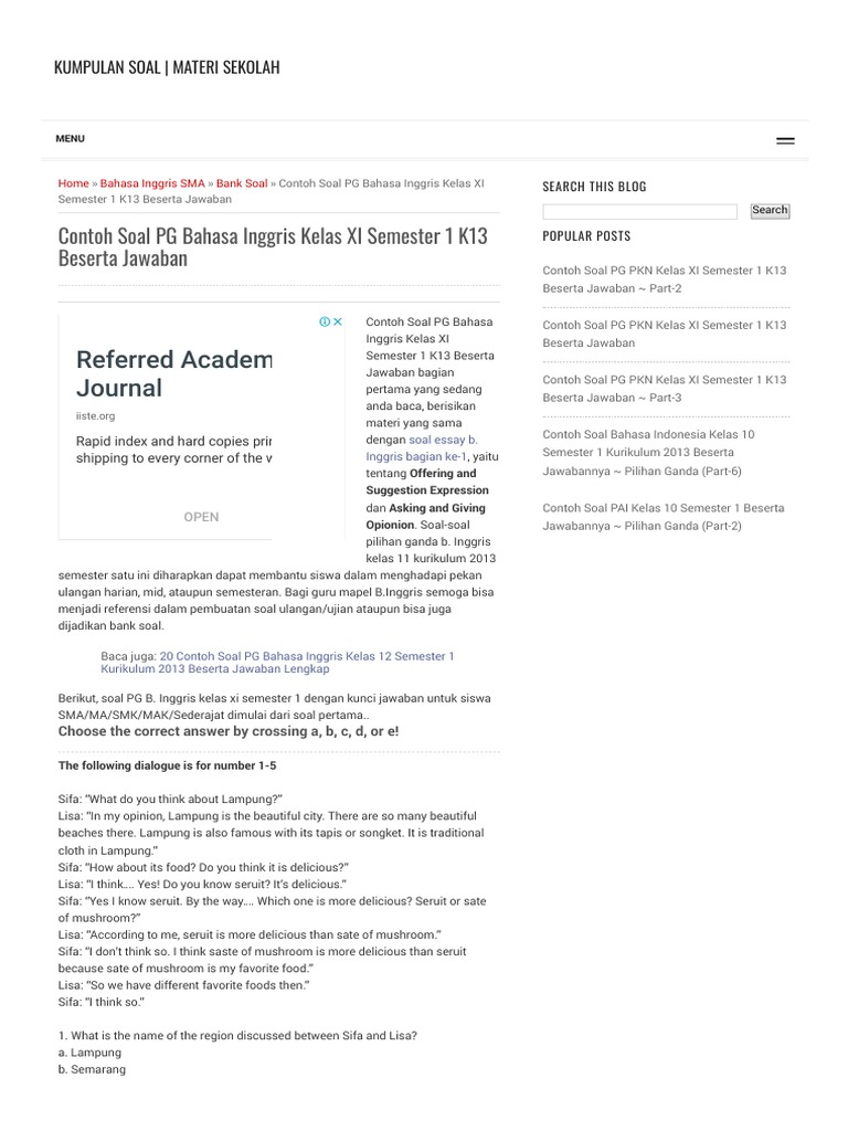 Contoh Soal Pg Bahasa Inggris Kelas Xi Semester 1 K13 Beserta Jawaban Kumpulan Soal Materi Sekolah