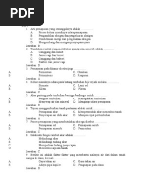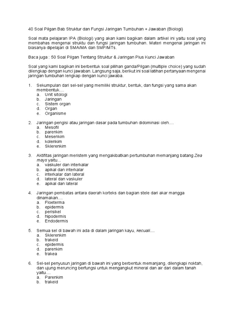 40 Soal Pilgan Bab Struktur Dan Fungsi Jaringan Tumbuhan Jawaban Biologi Pdf