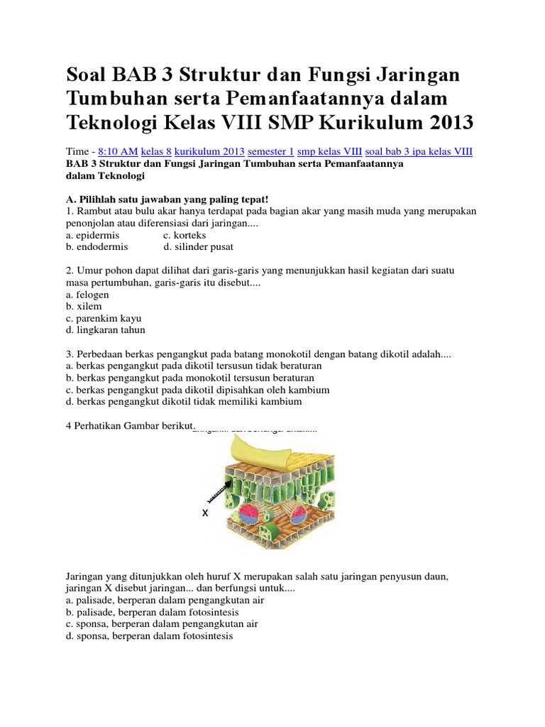 Soal Bab 3 Struktur Dan Fungsi Jaringan Tumbuhan Serta Pemanfaatannya Dalam Teknologi Kelas Viii Smp Kurikulum 2013