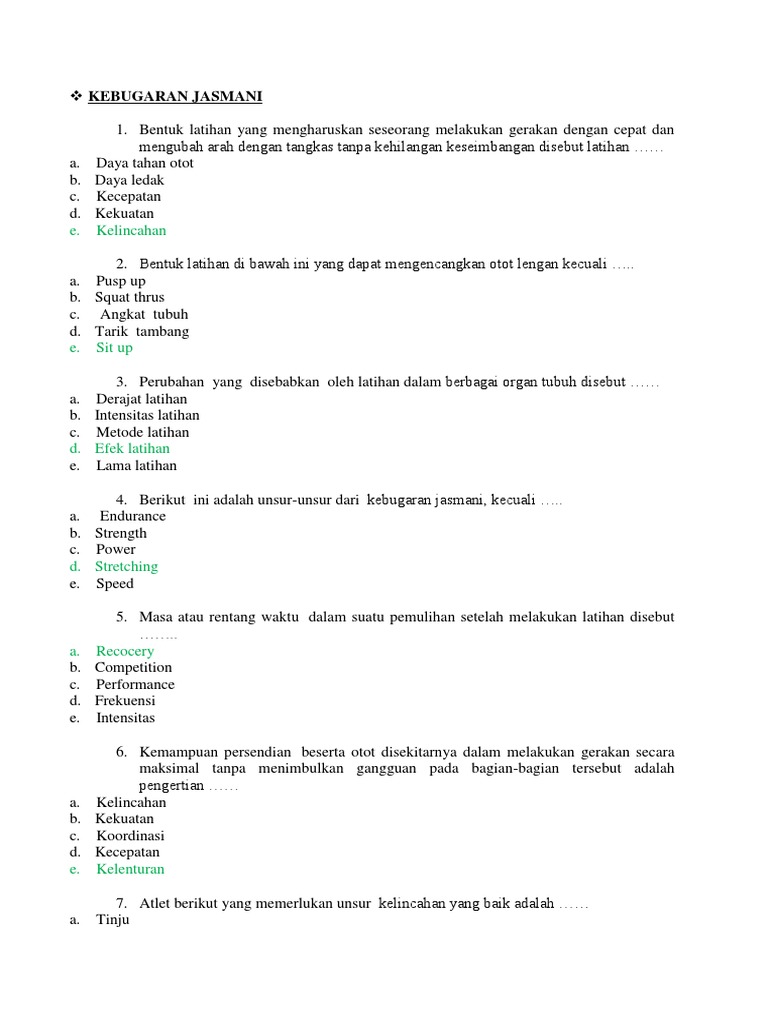 Contoh Soal Kebugaran Jasmani Dan Kunci Jawaban Contoh Soal Terbaru