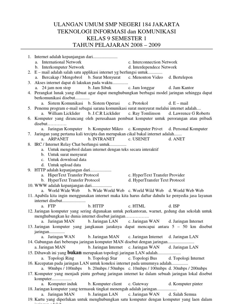 Soal Tik Pdf 50 Contoh Soal Tik Kelas 9 Semester 1 Beserta Jawabannya Belajarnesia Com